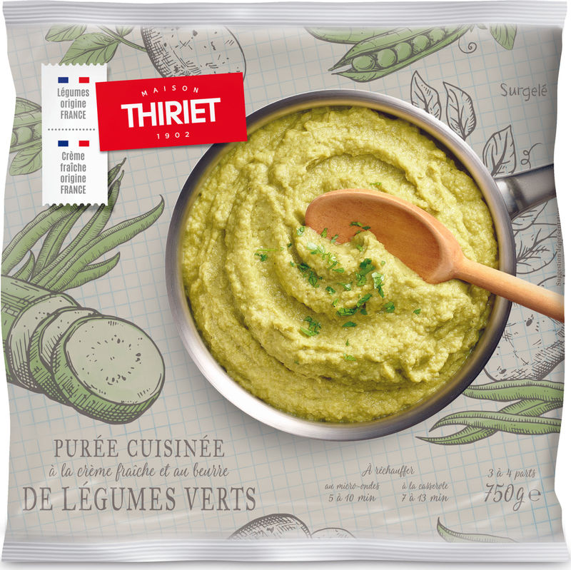 Indulge in a taste of France with Maison Thiriet's Cooked Green Vegetable Purée. This vibrant purée is made from a wholesome blend of French green beans, zucchini, potato, peas, spinach, and onion, all combined with a splash of liquid cream and a hint of butter for a touch of richness. Each ingredient is sourced directly from France, ensuring the freshest, most authentic flavors. Great for those who seek a healthy yet delicious option, this purée will not disappoint with its smooth texture and robust taste.