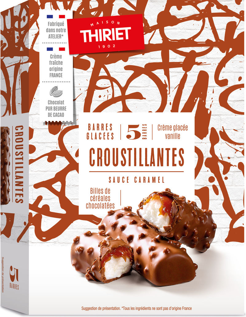 Indulge in a gourmet frozen treat with Maison Thiriet's 5 Crunchy Ice Cream Bars. Each bar is a delightful combination of milk chocolate, caramel, and a hint of dark chocolate for a taste that's both rich and delicious. The outer layer of creamy milk chocolate gives way to a crisp cereal center, putting a delightful crunch in every bite. Made with quality, all-natural ingredients, these bars are the perfect blend of creaminess and crunchiness. You'll savor every last bite of this luxurious, French dessert.