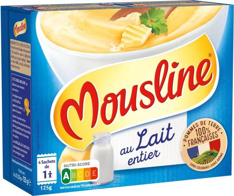 Savor the delightful taste of home with Mousline's Flaked Mashed Potatoes With Milk. Made with 99% real potatoes, this French classic brings you the high-quality flavor you crave, without the hassle of peeling or boiling. Enriched with a hint of turmeric and an antioxidant boost from rosemary extract, this mashed potato mix combines both taste and nutrition in a versatile side dish. Its smooth texture and rich, hearty taste make it a wonderful addition to any meal. And with the possibility of containing milk, it gives you a creamy, indulgent experience that will make your taste buds sing.