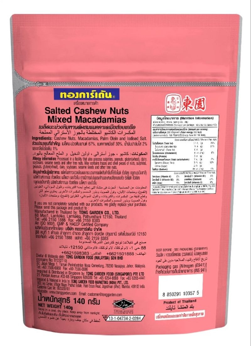 Enjoy a delightful blend of SALTED CASHEW NUTS MIXED MACADAMIAS 140G. This exquisite mix contains perfectly salted cashews and macadamias that deliver a mix of crunchy texture and delicious, nutty flavor. Celebrate the incredible taste of these bite-sized pieces of heaven. Whether you're on the go or need a snack break, this blend is an excellent choice.