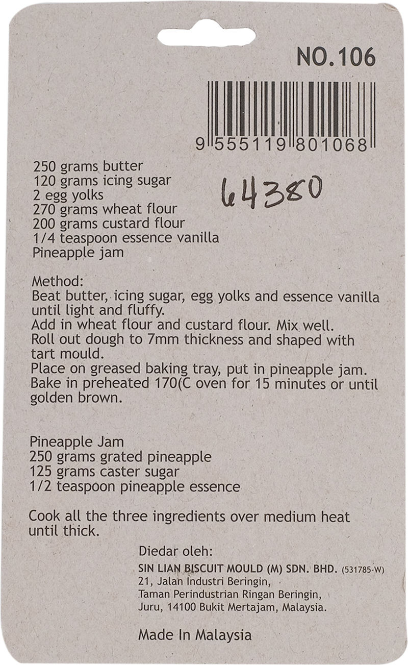 Unleash your inner baker with our COOKIE PLASTIC MOULD #106. This high-quality, durable mould lets you create perfect cookies every time, adding a fun touch to your baking projects. It's non-stick, easy to clean, and perfect for bakers of all ages and skills.