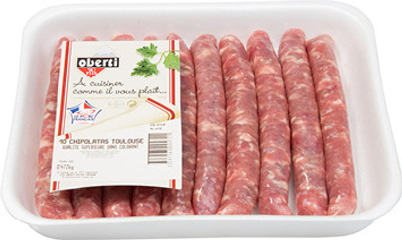 Indulge in the classic French culinary experience with Oberti's Chipolata Sausages. Frozen to maintain freshness, these high-quality sausages are made from a blend of pork meat and fat VPF, seasoned with a medley of spices and a hint of dextrose and sucrose. Each sausage is encased in a natural gut and is meticulously prepared to achieve a tantalizing flavor. They are the ideal choice for a barbecue party, adding a touch of French gourmet delight to your grill.