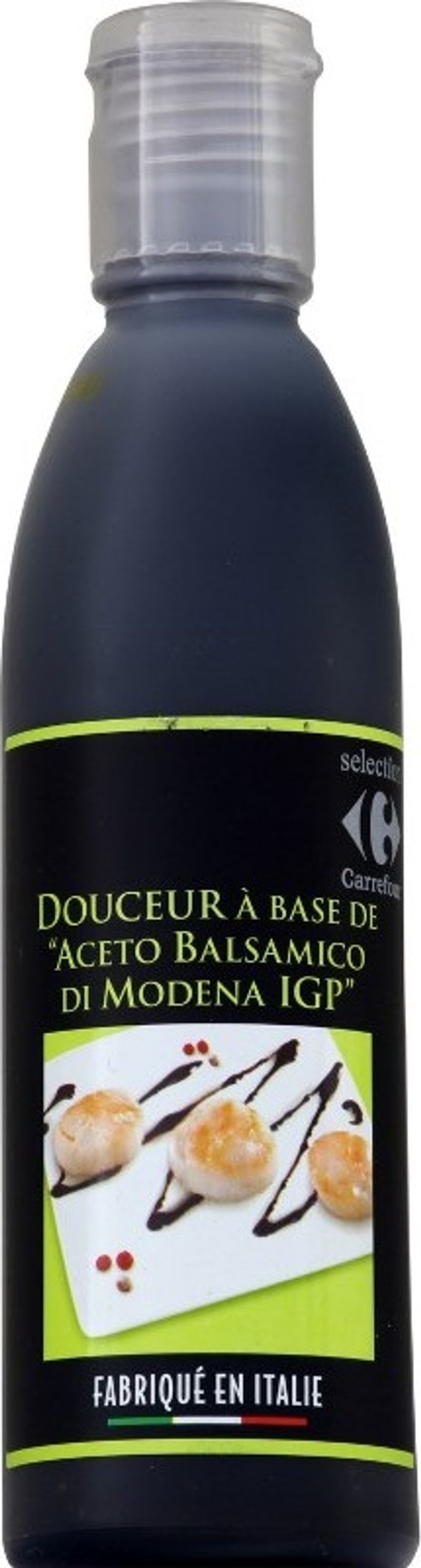 Experience the rich and robust flavor of Carrefour's Balsamic Vinegar, the perfect addition to your pantry. This exquisite vinegar is expertly crafted from quality grape juice concentrate and Aceto Balsamico di Modena IGP, which constitutes 25% of the blend. The use of concentrated grape must and wine vinegar in its composition enhances its flavor profile, while a touch of caramel ammonium sulfite gives it a beautiful, dark color. This product is from Carrefour's SAVOURY GROCERIES category, under the subheading of oils, vinegars, and salad dressings. It's a gluten-free ingredient and contains sulfites.