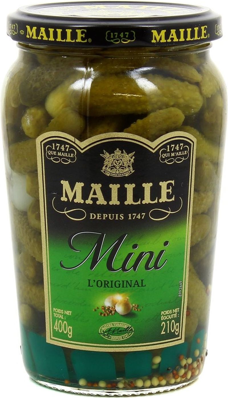 Indulge in the crisp, tart flavor of Maille Mini Pickles, an exquisite addition to your pantry. These petite French cornichons are carefully pickled with a blend of vinegar, salt, onion, mustard seeds, and delicate flavorings, creating a taste sensation that's both robust and refreshingly tangy. As a hallmark of the renowned Maille brand, these pickles come with the assurance of quality and flavor, including sulfites for preservation. They're a perfect condiment for all your savory culinary adventures.