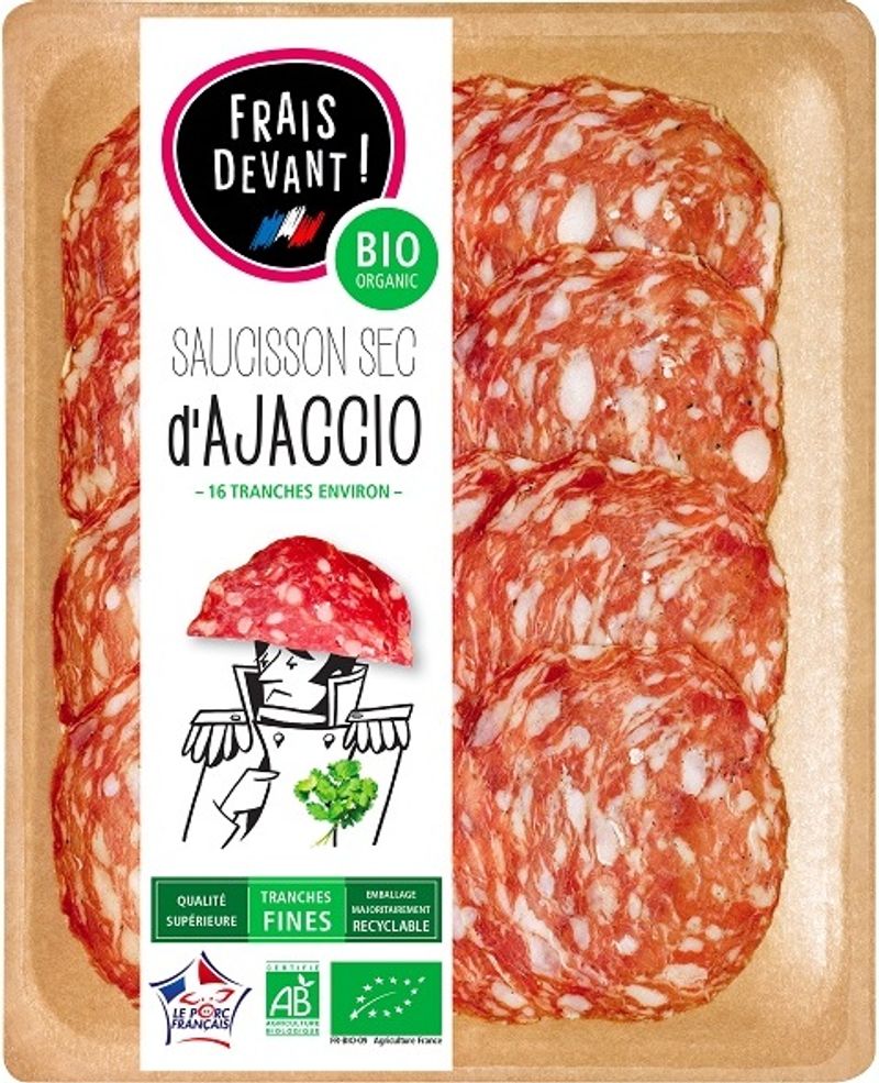 Experience the rustic, earthy flavors of the Mediterranean with Frais Devant's Organic Corsican Sausage. Crafted with passion and precision, this top-quality cold cut is a culmination of centuries-old Corsican charcuterie traditions, bringing you an irresistible mix of tastes and textures. Made from high-grade organic pork, the sausage is carefully seasoned and air-dried, resulting in a rich, complex flavor that's sure to impress. As a product of our commitment to ethical farming and sustainable practices, this organic Corsican sausage also offers an added benefit: peace of mind, knowing you’re choosing a product that's not only delicious, but also kind to the planet.