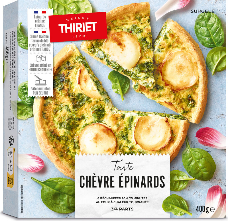 Indulge in the rich, tantalising flavours of Maison Thiriet's Goat’s Cheese and Spinach Pie, a culinary delight straight from the heart of France. This frozen pie combines 15% farm-fresh spinach and 15% mature goat cheese sourced within the European Union, encased in a golden crust made from locally-sourced French wheat. Also featuring free-range French eggs, creamy butter, and a hint of nutmeg, garlic and pepper, this savoury pie takes your taste buds on a gourmet journey. Whether you're hosting a dinner party or looking for a quick yet sumptuous meal, this pie is guaranteed to impress.