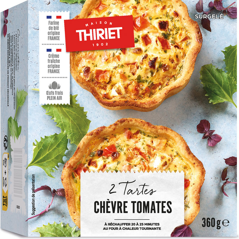 Introducing Maison Thiriet's 2 Goat Cheese and Tomato Croustades, a culinary delight from our frozen selection. Each croustade is generously filled with fresh tomatoes and delectable goat cheese, a perfect balance of tangy and sweet. Made with wheat flour and carefully seasoned with basil, thyme, white pepper, and nutmeg, our croustades offer a unique flavor profile that will awaken your palate. Furthermore, the inclusion of fresh eggs from free-range hens and sour cream adds a rich, creamy texture that beautifully complements the crispy crust.