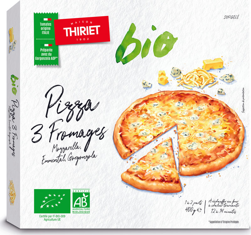 Indulge in the authentic flavors of France with Maison Thiriet's Organic 3 Cheeses Pizza. This frozen delight is a harmonious blend of Mozzarella, Emmental, and Gorgonzola cheeses, all sourced from organic farming, atop a crispy wheat crust. The tangy tomato purée and a sprinkle of oregano add a burst of flavor, making each bite a gastronomic experience. As part of our frozen selection, this pizza offers all the taste of gourmet cooking with the convenience of a quick, easy meal.
