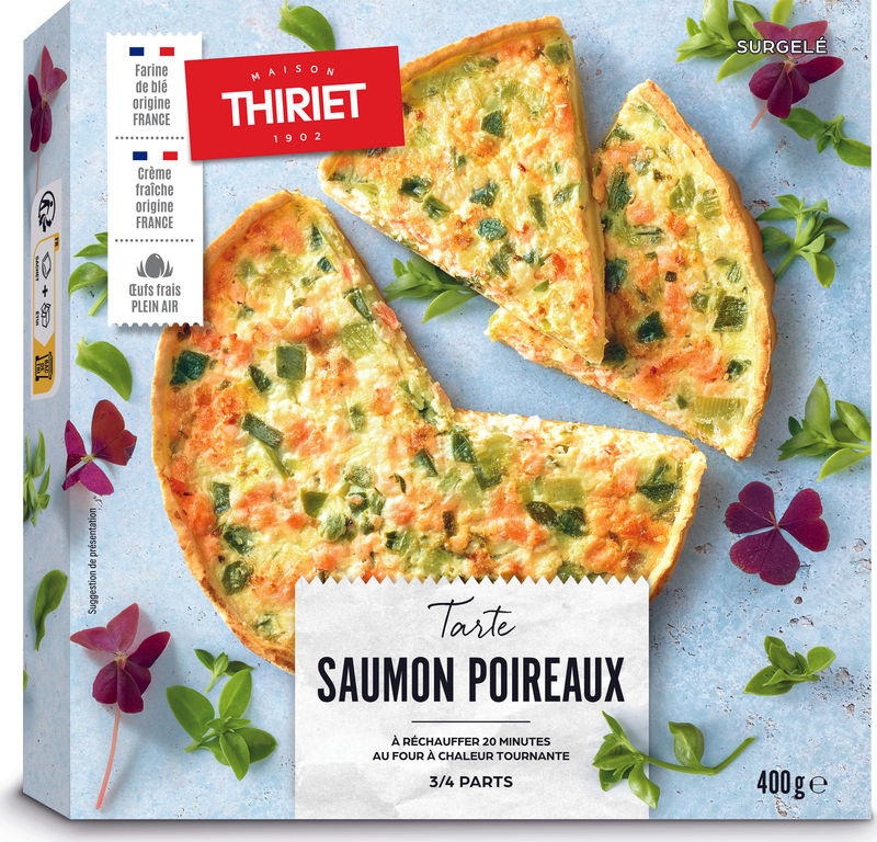 Savor the exquisite taste of France in your home with the Salmon and Leek Tart from Maison Thiriet. This high-quality frozen tart combines succulent Atlantic salmon and fresh leeks, enveloped in a crispy, golden crust made from wheat flour. Free-range eggs and sour cream ensure a rich, creamy texture and delightful flavor, while subtle hints of vermouth, shallot, and white pepper add a sophisticated touch. This tart is easy to bake and serve, providing a convenient yet gourmet meal option for any occasion.