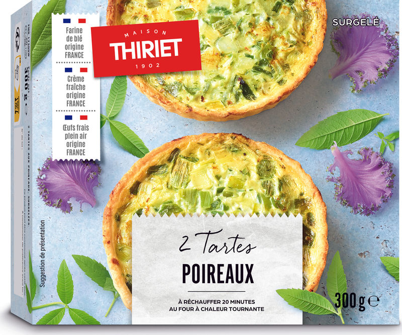 Discover the authentic flavors of France with Maison Thiriet's 2 Leek Tarts. These delectable tarts are a perfect blend of the finest ingredients, featuring 23.2% of leek, WHEAT flour, sour CREAM, fresh EGG and a touch of EMMENTAL, all carefully encased in a crispy crust. The freshness of leek paired with the creaminess of the sour cream and the richness of Emmental cheese create a harmonious symphony of flavors. Each ingredient is thoughtfully sourced, ensuring you experience a high-quality, frozen gourmet treat right at your fingertips.