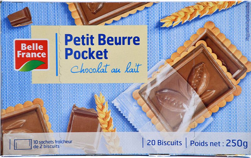 Indulge in the decadent delight of Biscuit Pockets Topped with Milk Chocolate from the renowned brand, Belle France. Each biscuit pocket is a perfect blend of crispy, crumbly biscuit filled with a heart of creamy, smooth milk chocolate. Crafted with the finest ingredients, these sweet treats are not just biscuits, but a luxurious experience waiting to tantalize your taste buds. Ideal for a mid-day snack, these pocket biscuits are perfect to satisfy your sweet cravings and add a touch of French indulgence to your day.