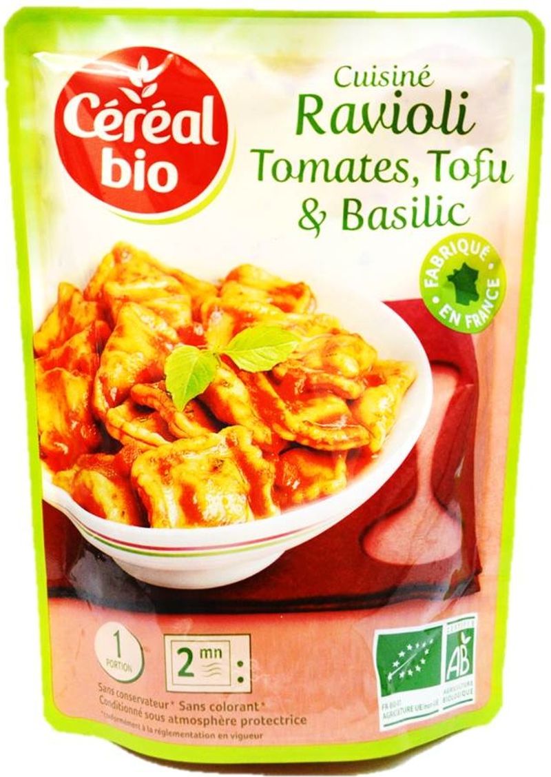 Savor the taste of Italy with our Céréal Bio Organic Tomato, Tofu, And Basil Ravioli. This scrumptious and wholesome dish is packed with the goodness of organic tomatoes, hearty tofu, and aromatic basil, all encased in delicate wheat semolina ravioli. Perfect for the health-conscious gourmand, this prepared dish is not only 100% organic, it's also packed with healthy proteins from tofu and rich in fiber from wheat semolina. The bright, natural flavors of the tomatoes, herbs, and spices are expertly preserved, making every bite a delightful experience.