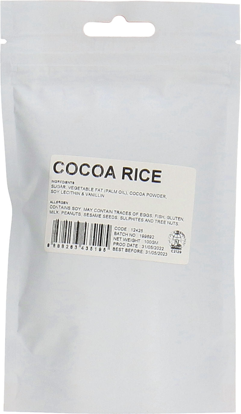 Indulge in the delectable delight of our COCOA RICE 100G, a sumptuous treat from the picturesque landscapes of Indonesia. Each grain is finely crafted with premium ingredients like cocoa powder, sugar, vegetable fat, soya lecithin, milk powder, and vanillin, promising a heavenly chocolatey experience. This popular rice topping not only adds a sweet twist to your baked goods and pastries but also serves as an aesthetically pleasing decoration. Available in handy packs of 100g, 250g, and 1kg, it’s the perfect addition to your baking pantry.