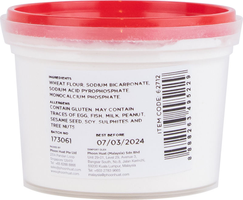 Redman Baking Powder, originating from Singapore, is your perfect baking companion. Made with a blend of wheat flour, sodium bicarbonate, sodium acid pyrophosphate and monocalcium phosphate, this 100g pack of baking powder works as an effective leavening agent, giving your baked goods a light and fluffy texture. Note: this product contains wheat gluten, catering to those who want an authentic taste in their bakeries. Available in additional sizes of 500g, 5kg and 18kg for your convenience.