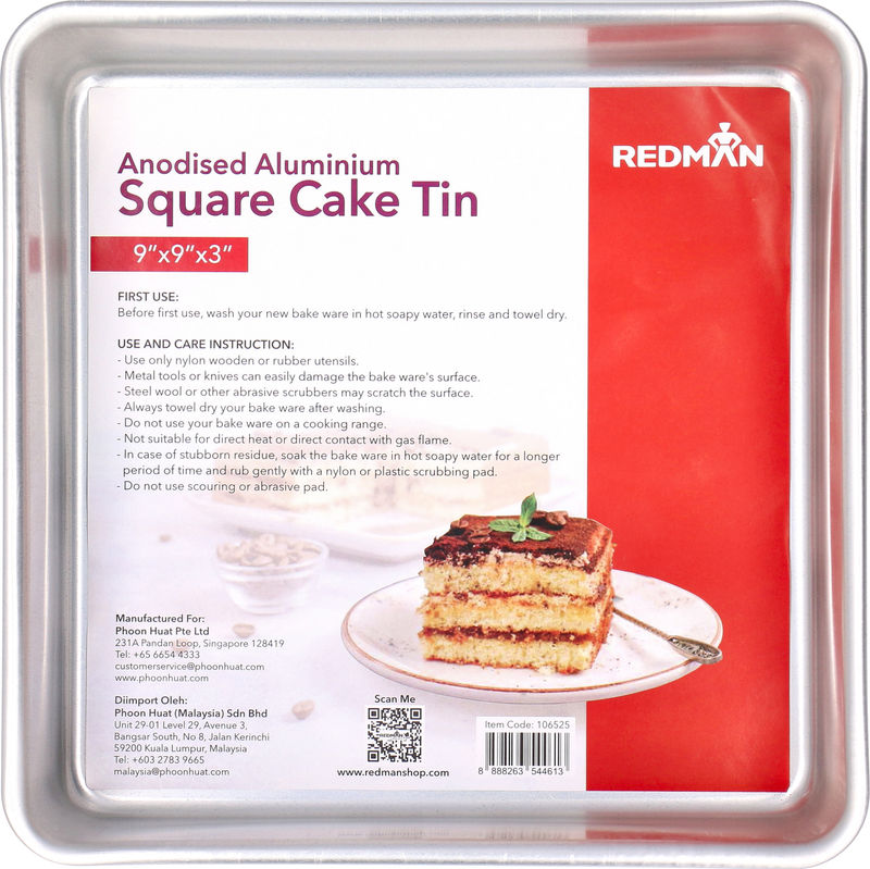 The SQUARE CAKE TIN ALUM ANODIZED 9X9X3" is perfect for baking enthusiasts. This sturdy, reliable cake tin is made from high-quality anodized aluminum, ensuring even heat distribution for a perfectly baked cake every time. The 9x9x3" dimension is ideal for a variety of baking projects, from simple square cakes to elaborate layered desserts. With its sleek design, it's not only functional but also a great addition to any kitchen.