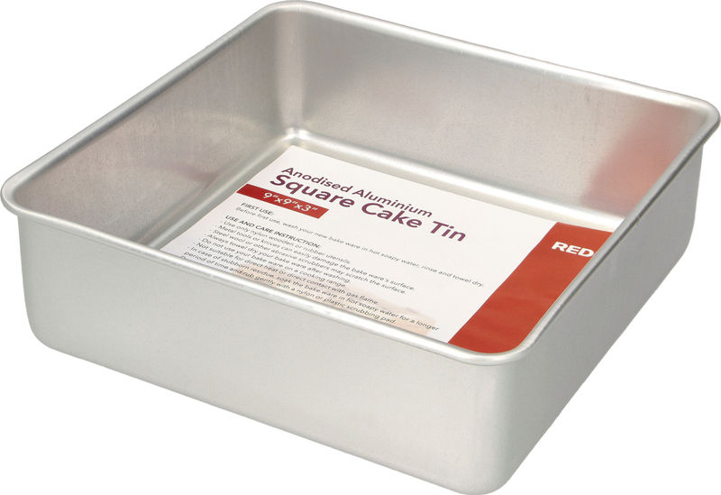 SQUARE CAKE TIN ALUM ANODIZED 9X9X3"