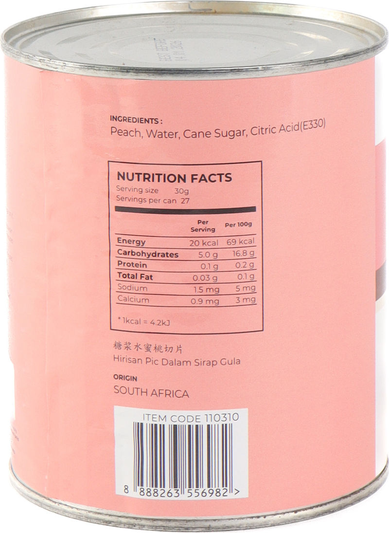 Indulge in the taste of summer with our PEACH SLICES IN SYRUP 825G, a tantalizing explosion of sweetness and flavor. Made from succulent peaches harvested at the peak of ripeness, these slices are preserved in a light, sugary syrup, accentuating their natural deliciousness. The addition of citric acid gives a slight tang, balancing the sweetness perfectly. Imported from China, this product offers a taste of Asia's finest peaches in every bite.