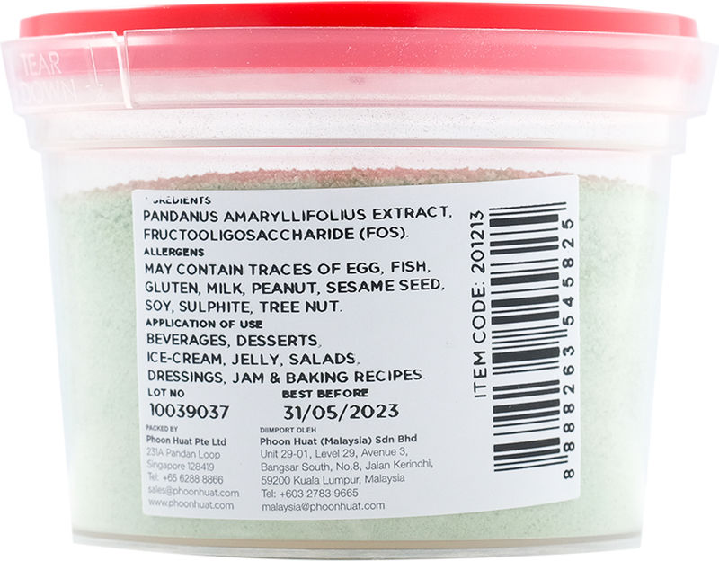Immerse yourself in the authentic Southeast Asian culinary experience with our PANDAN LEAF EXTRACT POWDER 50G. Sourced from the rich Malaysian soil, this aromatic powder is known as the "Vanilla of the East" and is celebrated for its unique, vibrant flavor. This ingredient is a staple in both traditional and fusion desserts, infusing a signature taste that will surely make your delicacies stand out.