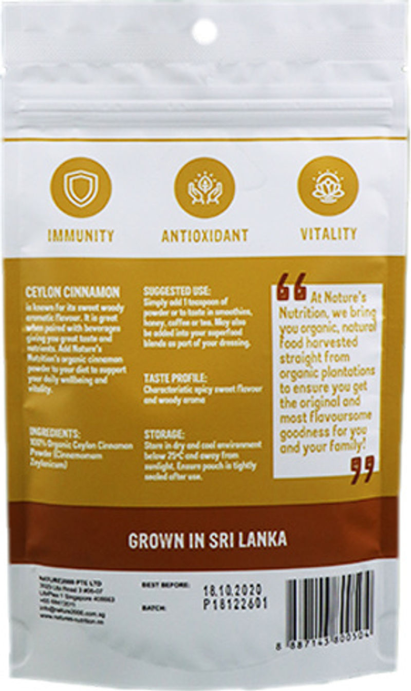 Our Raw Organic Ceylon Cinnamon Powder 70g is an aromatic and flavorful superfood sourced directly from the lush gardens of Sri Lanka. This 100% organic cinnamon powder is loaded with health benefits thanks to its antioxidant properties and is free from any artificial additives, ensuring that you get the purest form of this ancient spice. Spicy and slightly sweet, this Ceylon cinnamon is the perfect addition to your culinary adventures, adding a unique flavor profile to your dishes.