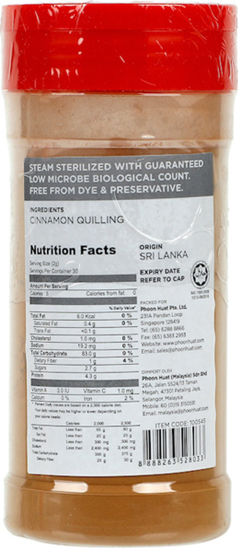 Our CINNAMON POWDER (CEYLON) 60G is a rich and aromatic spice hailing from the pristine lands of Ceylon. Known for its potent, sweet, and warm flavor, this cinnamon powder is a staple in any kitchen. This versatile spice can enhance both your sweet and savory dishes, from desserts and beverages to curries and stews.