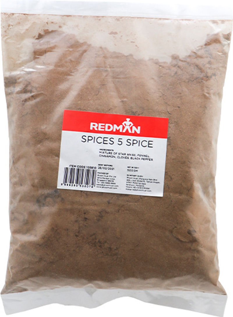 Our 5 Spice Powder 500G, crafted by a reputable brand, is a robust blend of spices originating from Malaysia. Comprised of star anise, cinnamon, cloves, fennel, and szechuan peppercorns, this Chinese Five Spice Powder is a flavourful medley that can enhance any dish. It is gluten-free, with a potent and distinctive taste that adds depth and aromatic richness to your meals.