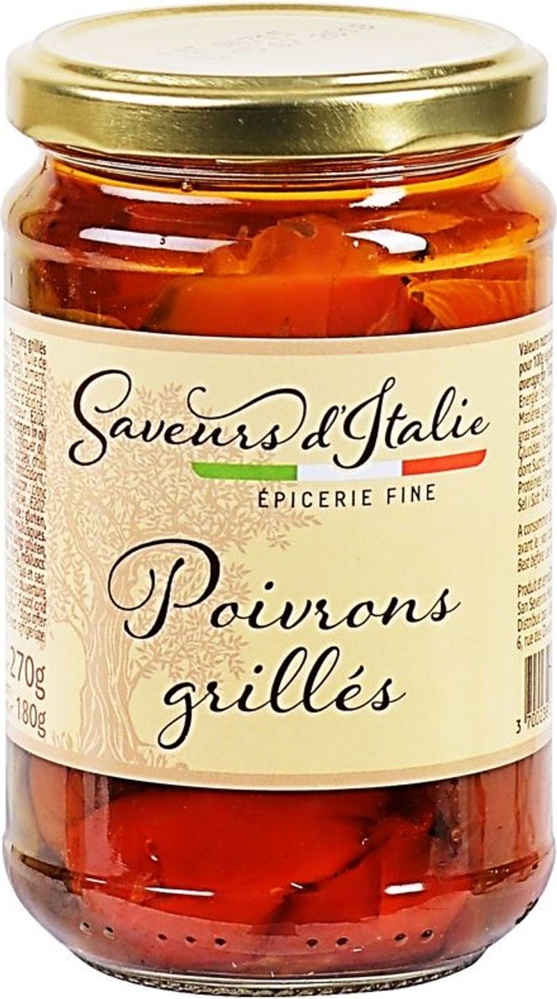 Experience the richness of Italian cuisine with Saveurs D’Italie's Grilled Peppers in Olive Oil. A perfect blend of succulent grilled peppers and aromatic herbs marinated in premium olive oil, this product is a must-have addition to your pantry. The peppers make up 65% of the content, thus ensuring the authentic taste of vibrant Italian peppers in every bite. Flavoured with a hint of garlic, oregano, parsley, and chilli pepper and a splash of wine vinegar, these peppers will elevate your meals with a burst of flavour.