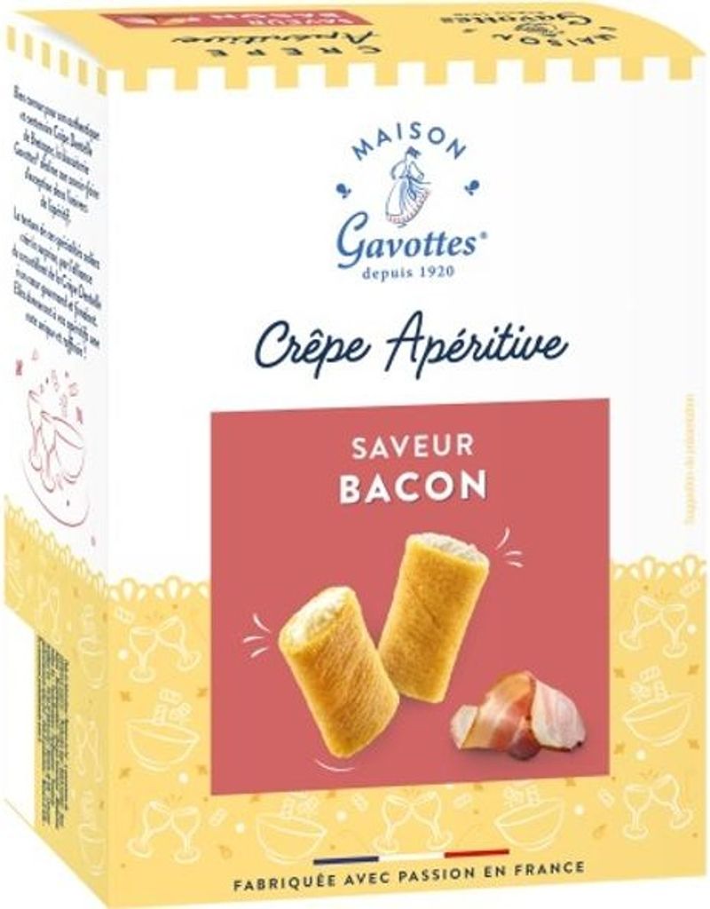 Enjoy a unique twist on classic French crepes with Maison Gavottes' Bacon Flavour Aperitif Crepes. These crepes are the perfect indulgent snack for your next gathering, infusing a delightful bacon flavour into each crispy crepe for a savoury, mouth-watering experience. Made with premium ingredients like cream powder, wheat flour, and natural flavourings, these aperitif crepes not only have a distinctive taste but also ensure a high-quality snacking experience. The added hint of paprika extract enriches the bacon flavour, making each bite an exquisite sensory delight.