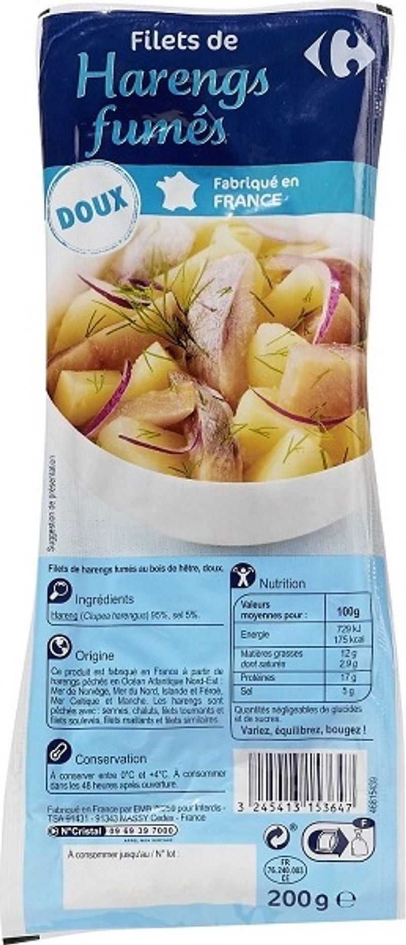 Experience the succulent taste of the sea with Carrefour's Smoked Soft Herring Fillets. Made from 95% HARENGUS (Clupea harengus) and 5% salt, these fillets boast a rich, smoky flavor that will surely delight seafood enthusiasts. These herring fillets are smoked to perfection, resulting in a delightful texture that is both soft and firm. They are an excellent source of Omega-3 fatty acids, protein, and essential vitamins, making them an irresistible yet healthy choice for your meals.