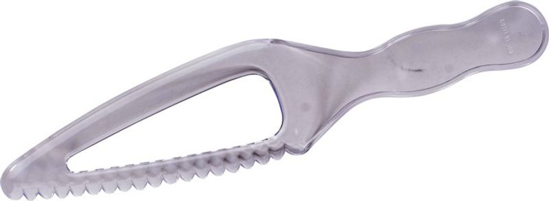The PLASTIC CAKE KNIFE ANGLED is a handy tool every dessert enthusiast should have in their kitchen. This ergonomically designed knife allows smooth and clean slicing, ensuring your cakes look as good as they taste. Being made from high-quality, robust plastic, it promises durability and longevity. Its unique angled design makes it easy to handle and manoeuvre, especially with layered or large cakes.