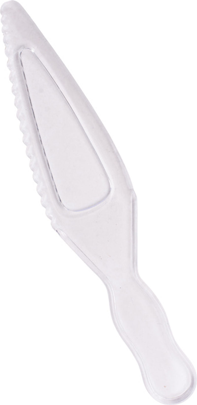 Make your cake cutting hassle-free with our PLASTIC CAKE KNIFE. This sturdy and lightweight tool is designed with a pointed edge to allow for precise and clean slices. Its ergonomic handle ensures a comfortable grip, making it perfect for all types of cakes and pastries. Produced with high-quality plastic, this cake knife is durable, safe to use, and easy to clean.