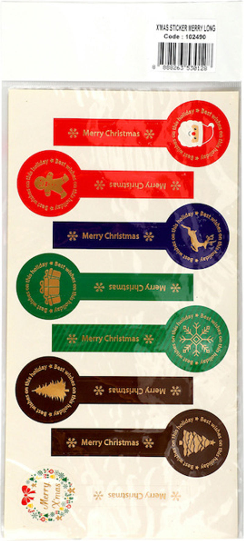 X'MAS STICKER MERRY XMAS LONG B093 8PC