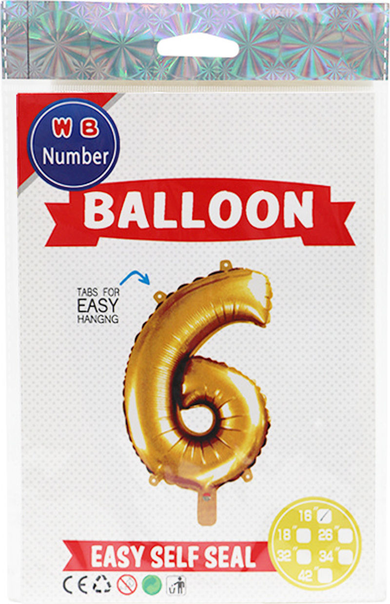 BALLOON NUMBER 6 GOLD 16"