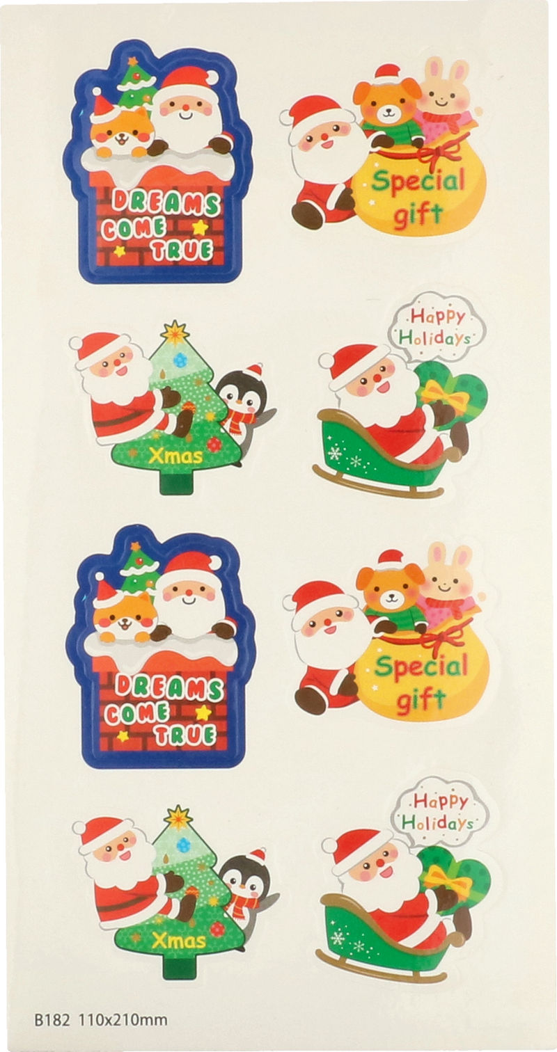Add a festive touch to your holiday gifts with the X'MAS STICKER B182 8PC. This set of 8 Christmas-themed stickers, made from quality paper material with a strong adhesive, is perfect for embellishing gift boxes, jars, and cookie bags. Originally crafted with care, these stickers are a charming way to personalize your presents and spread holiday cheer.