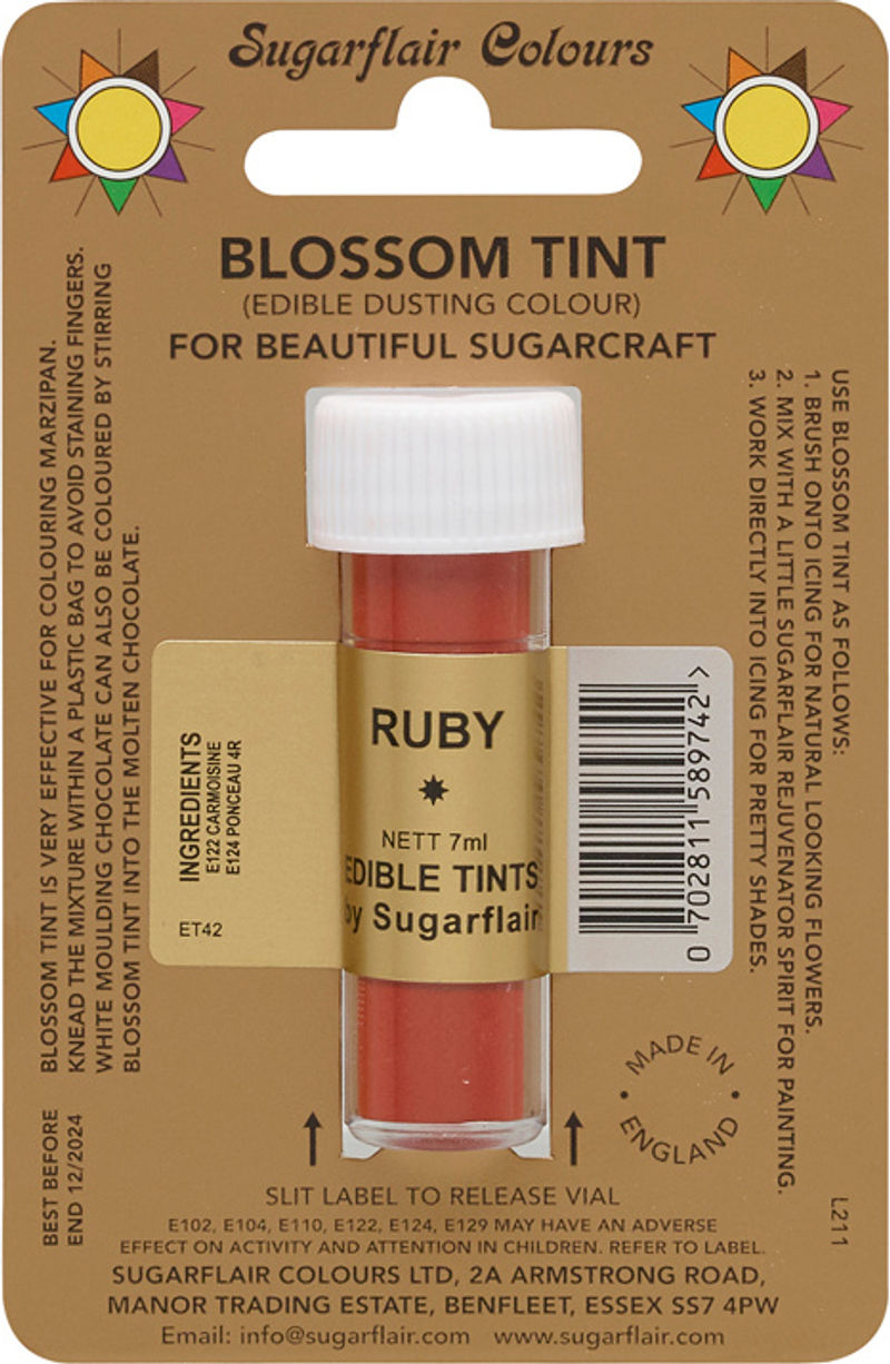 Unleash your inner artist with TINT COLOR DUSTING POWDER - RUBY D117 7ML by SUGARFLAIR. This vibrant and versatile dusting powder is designed for the creative baker, confectioner, or home cook. Manufactured in the United Kingdom, this product uses only the finest quality ingredients and has been developed over 30 years of expertise in the sugarcraft industry. Its vivid ruby hue is perfect for adding a glamorous finish to your creations.