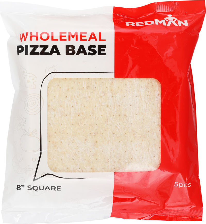 SQUARE WHOLEMEAL PIZZA BASE 8" PAR-BAKED 5PC