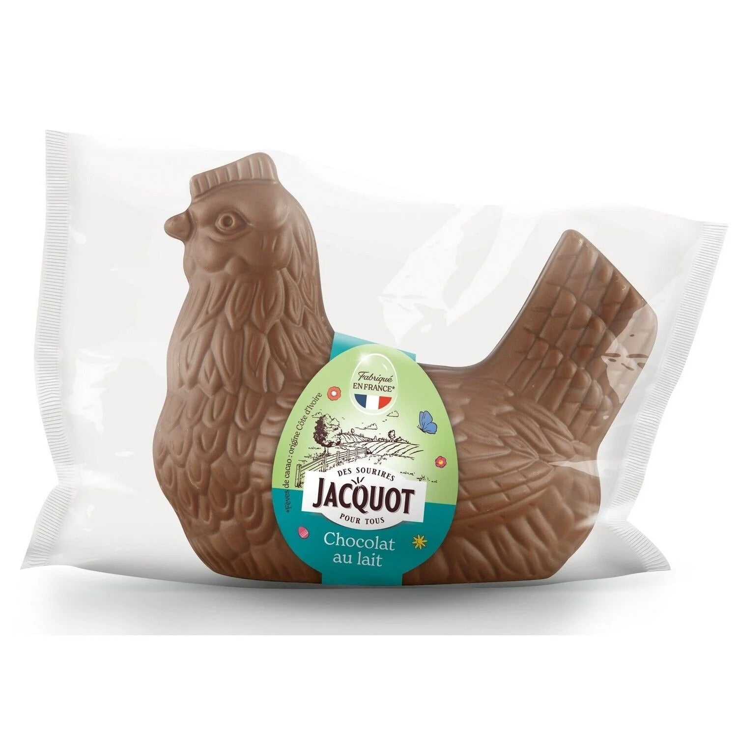 Indulge your sweet tooth with our delectable Milk Chocolate Hen With Filling from the renowned brand, Jacquot. This exquisitely molded confectionary is made from superior quality milk chocolate, with a rich, creamy texture that melts in your mouth. Each chocolate hen is filled with a delicious secret that adds an extra layer of excitement to your chocolate experience. This festive treat, crafted from sugar, cocoa butter, whole milk powder, cocoa mass, natural vanilla flavors, and the emulsifier lecithins, is perfect for Easter, children's events, or merely for those moments you want to savor something sweet.
