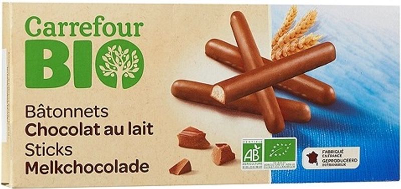 Indulge in the decadent flavor of Carrefour's Organic Milk Chocolate Sticks. Our milk chocolate sticks are a delightful blend of organic ingredients, including a sumptuous 48% milk chocolate made with cane sugar, cocoa butter, whole milk powder, and cocoa mass. The crispness of organic wheat flour paired with the velvety smoothness of butter and a hint of oleic sunflower oil enhances the overall taste. These organic treats may also contain traces of nuts and sesame seeds, adding to their rich, wholesome flavor profile. Ideal for the health-conscious sweet tooth, these treats fall under our Healthy Biscuits sub-category in Sweet Groceries.