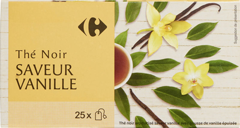 Delight your senses with Carrefour's Vanilla Black Tea, a sophisticated blend that combines the robustness of black tea with the sweet, soothing notes of natural vanilla. This exceptional tea, composed of 87% black tea, is infused with natural vanilla flavourings and specks of 2% spent vanilla beans, offering a rich, full-bodied and aromatic drinking experience. It is a perfect choice for tea lovers looking for a sweet twist to their traditional cup of tea. This comforting beverage is part of our Sweet Groceries category, promising to bring a warm, nostalgic touch to your tea-time.