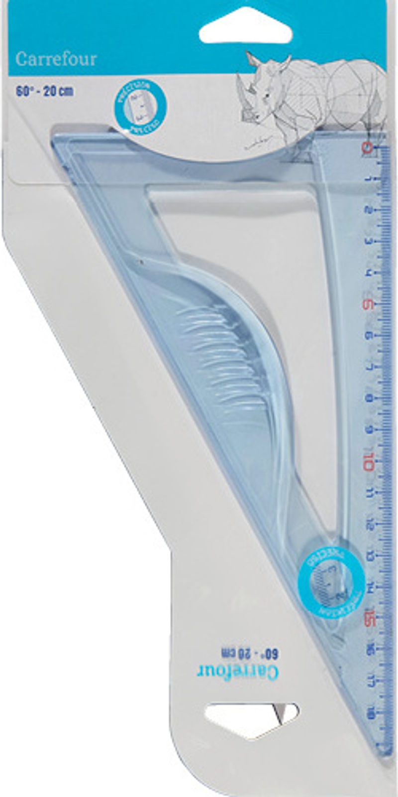 Introducing the Carrefour Set Square - a 20cm long, essential tool for all your geometry needs. Designed with precision in mind, this plastic set square features angles of 30°, 60°, and 90°, making it ideal for all types of school geometry work. Its plastic build ensures it is both robust and strong, capable of withstanding the rigors of daily use. Whether you're an artist, a student, or a professional, this Carrefour Set Square is perfect for high tracing precision, making your projects easier and more efficient.