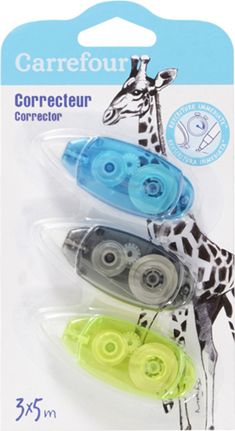 The Carrefour Pack Of 3 Correction Tapes is a must-have for every home office or study space. Conveniently designed, these 3x5m mini correction tapes are extremely durable and are made to last even with frequent use. They allow immediate rewriting after just a few seconds, making them perfect for students and professionals alike. Their compact size makes them an ideal addition to any pencil case or office supply drawer without taking up too much space.