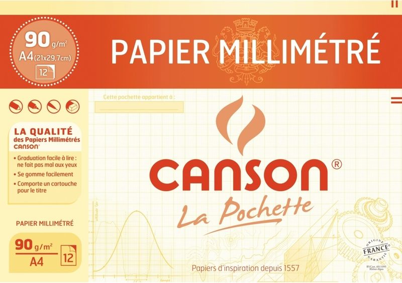 The Canson Pouch Of 12 Millimeter Sheets 90g A4 is a revolution in the stationery world, ensuring quality work and impeccable layouts on grain-free paper. It's the perfect choice for professionals and students alike who value the precision of their work. Each of the 12 sheets in the pouch are well sized at 21x29.7cm and weigh 90 grams, which ensures durability and a good feel while handling. An added bonus is a specific millimeter screen for better readability of graphics, coupled with a title block for neat rendering.