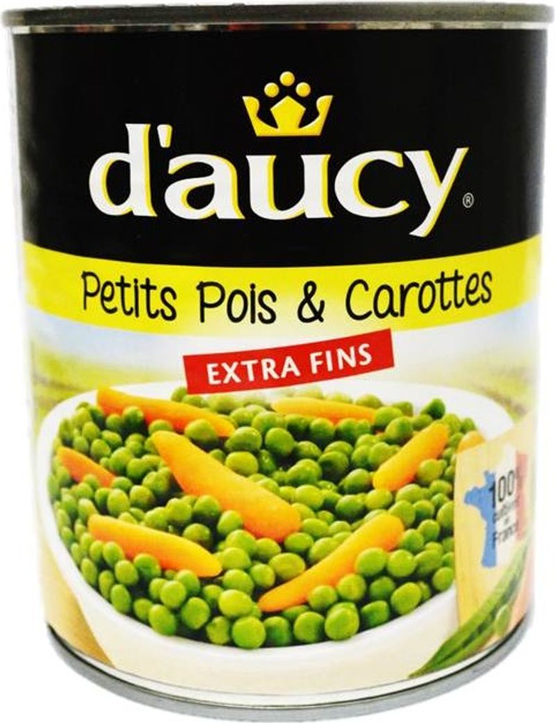d’aucy garden peas and carrots, French canned vegetables, nutritious tinned vegetables, peas and carrots in large can, healthy savory groceries, easy vegetable side dish, peas and carrots for soup, French-style pot-au-feu ingredients.