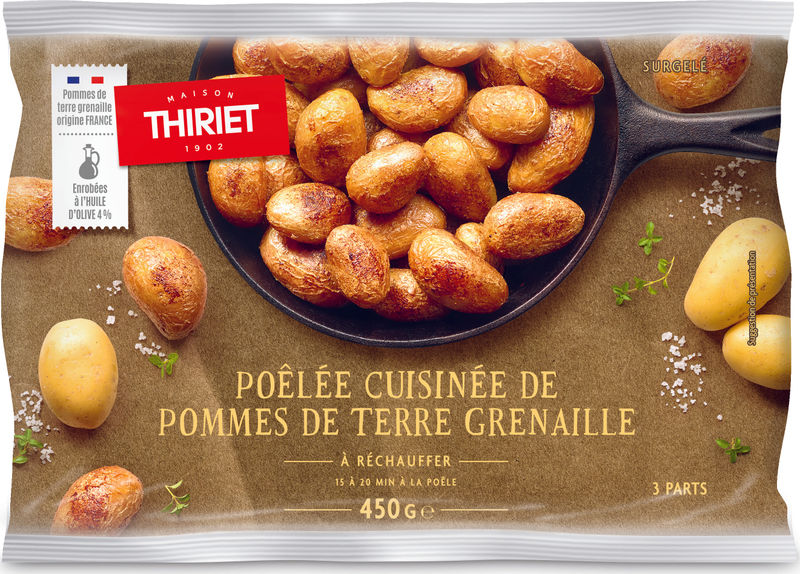 Maison Thiriet's Pan Fried Potatoes offer an authentic taste of French cuisine right in your home. Crafted with 93.3% pre-fried French potatoes, seasoned with Guérande salt, pepper, and drizzled with extra virgin olive oil, these potatoes are a perfect blend of taste and health. Enjoy the comfort of French-style, pan-fried potatoes which are quick to prepare and delightful to devour. The potatoes are frozen to lock in the freshness and nutrients, ensuring a crisp, golden exterior and a creamy, tender interior in every bite.
