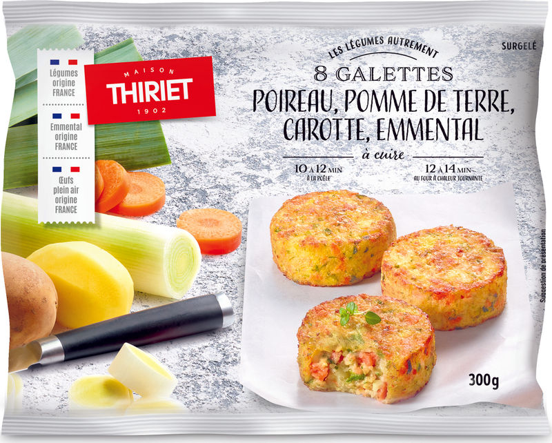 Discover the delightful blend of French flavors with Maison Thiriet's 8 Leek, Potato, Carrot and Emmental Patties. Each patty is a delicious palette of homegrown French ingredients including leek, potato, carrot, and emmental cheese, all sourced from local farms ensuring the freshest taste. The choice of ingredients not only satisfies the taste buds but also provides wholesome nutrition. The breadcrumbs add a pleasant crunch, while the sunflower oil used for frying gives a light, appetizing finish. All ingredients are free from artificial preservatives, making these patties a healthy and convenient choice for those quick meals or sides.