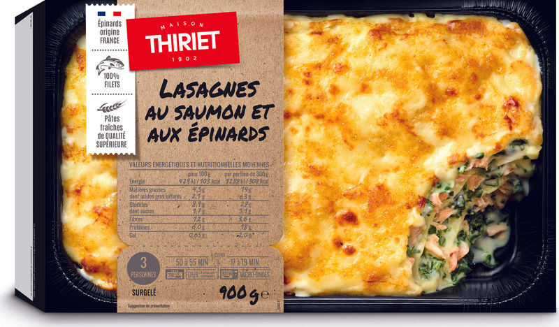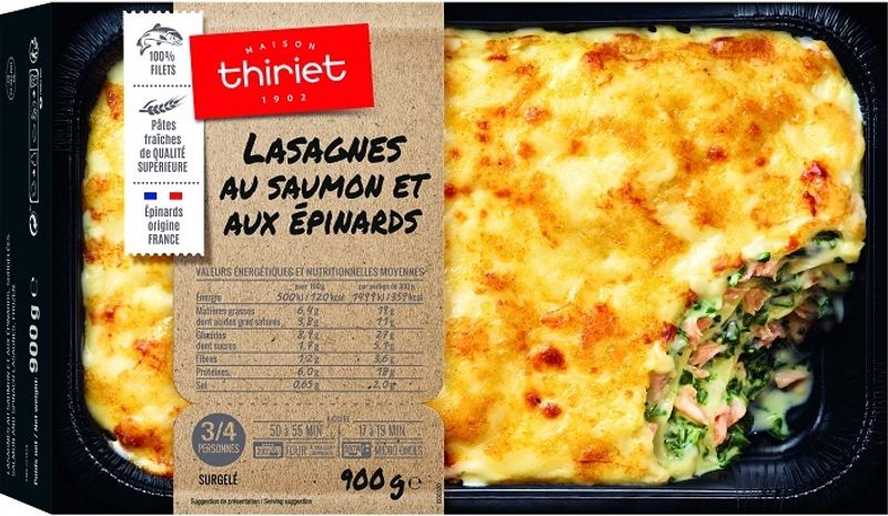 Discover the sublime taste of Maison Thiriet's Salmon and Spinach Lasagne. This frozen dish, effortlessly combining tender salmon and nutritious spinach in a creamy white sauce, offers a culinary experience like no other. Each ingredient, from the high-quality hard wheat semolina to the robust Emmental cheese of French origin, contributes to the rich, indulgent flavor that leaves you craving more. Made with carefully-selected ingredients, this ready-to-eat meal combines the convenience of frozen foods with the deliciousness of a homemade dish.