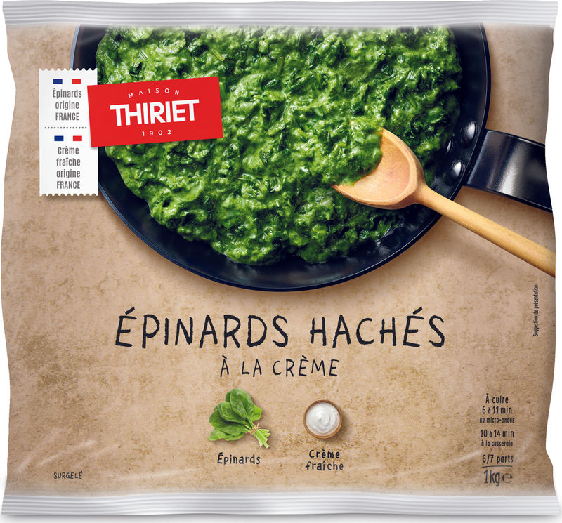 Experience the classic French comfort food with Maison Thiriet's Chopped Spinach in Cream Sauce. This delicious ready-to-eat meal is made with 70% chopped spinach, carefully blended with a rich and creamy 7% fresh whipping cream of French origin. The recipe is further enhanced with a dash of nutmeg, a sprinkle of white pepper, and sweet butter to give it a perfect French twist. Packed with nutrients from spinach and milk protein, this frozen meal provides both great taste and health benefits, making it an ideal choice for health-conscious customers.