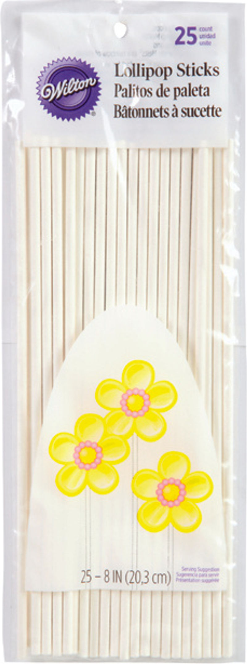 The Lollipop Stick Paper 8" marked 1912-9320 is a pack of 25 sturdy and versatile sticks, ideal for crafting memorable confectionery creations. Perfect for both professional and home bakers, these sticks are crafted from durable paper, ensuring that your lollipops, cake pops, or other sweets will be supported. They are easy to handle and don't take away from the taste of your sweet treats.