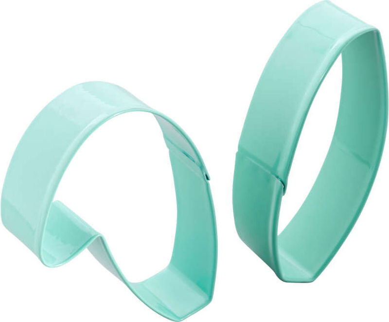 Brighten up your baking with the BUNNY EARS METAL CUTTER SET 2PCS. Crafted from food-grade metal, these teal-colored cutters are perfect for adding playful bunny ear shapes to your culinary creations. Whether you're making cookies or cupcakes for Easter, a birthday, or just for fun, this set from the USA guarantees high-quality and durability.
