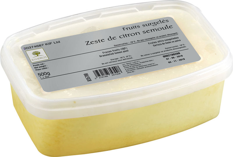 Introducing the FROZEN GRANULATED ZEST LEMON 8357, a delightful burst of citrus freshness packed into a convenient frozen form. This product encapsulates the tangy, vibrant flavor of natural lemons, adding an invigorating touch to your culinary creations. As it is frozen, you can use it anytime you need a burst of lemony freshness, without worrying about having fresh lemons on hand.