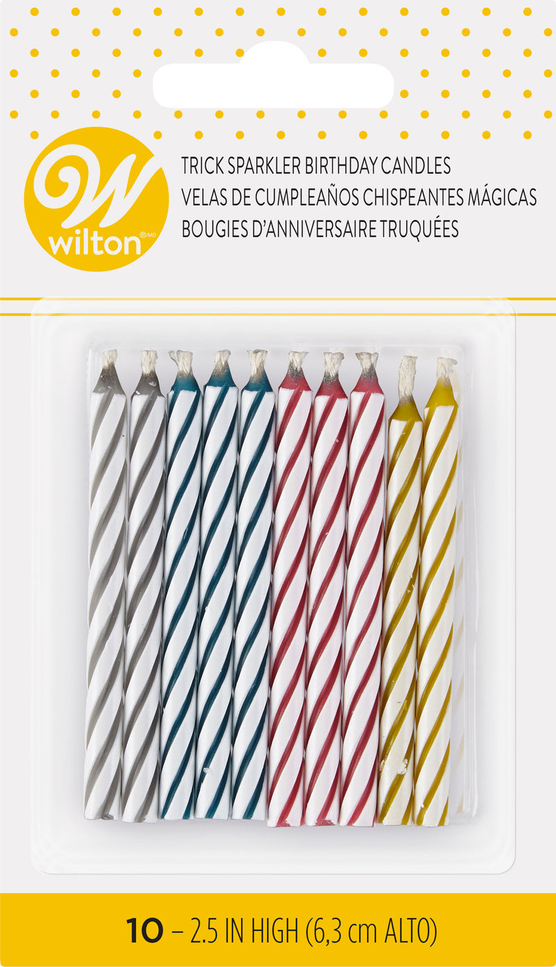 Add a touch of fun and surprise to your celebrations with our ASSORTED COLOR TRICK CANDLES that refuse to be put out so easily! This pack contains 10 vibrant 2.5" candles, each one a different color. Sourced from the product number 2811-220, these are the perfect addition to any party cake or centerpiece, guaranteed to bring laughter and joy. The mystery of the trick candle never gets old and provides a playful atmosphere to the event.